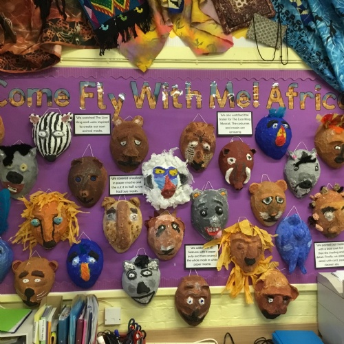 In Come Fly With Me! Africa, we have learnt all about the history and geography of Africa, including its location and largest countries.  In literacy lessons, we have written instructions for how to create a stunning African sunset picture and we are reading African folk tales. Our art work is very exciting, as we are creating Lion King inspired masks.