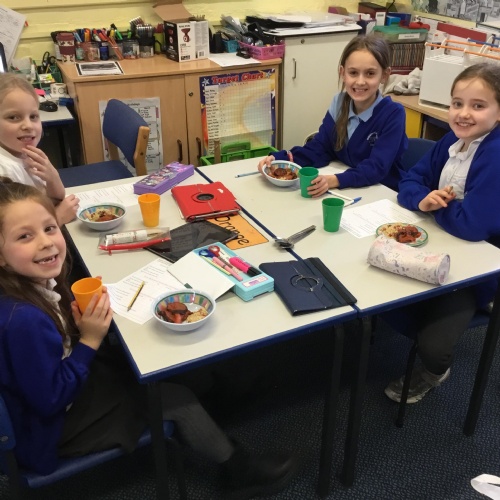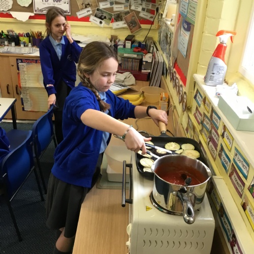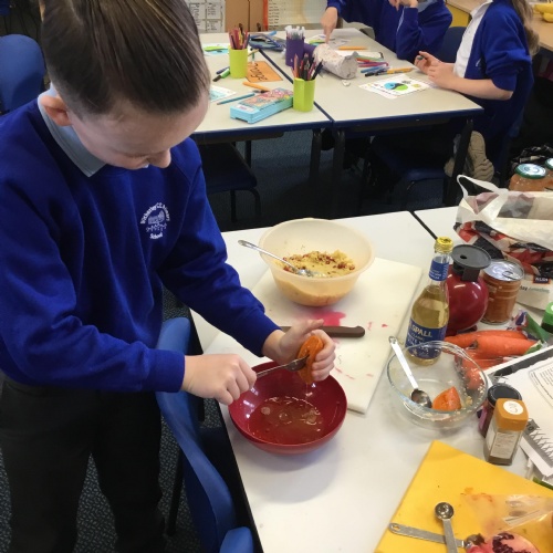 We learnt about basic food hygiene, keeping ourselves safe when using knives and the hob/oven and we enjoyed trying new foods!
