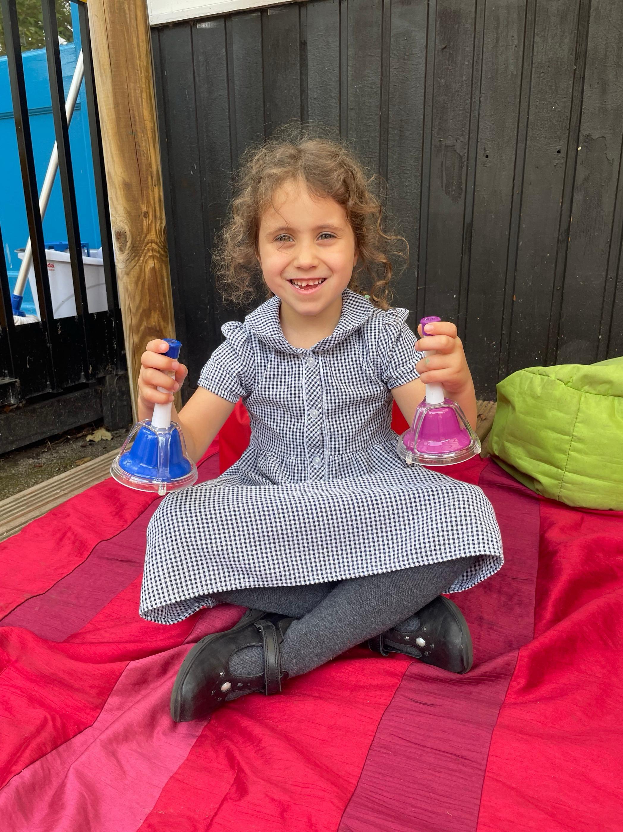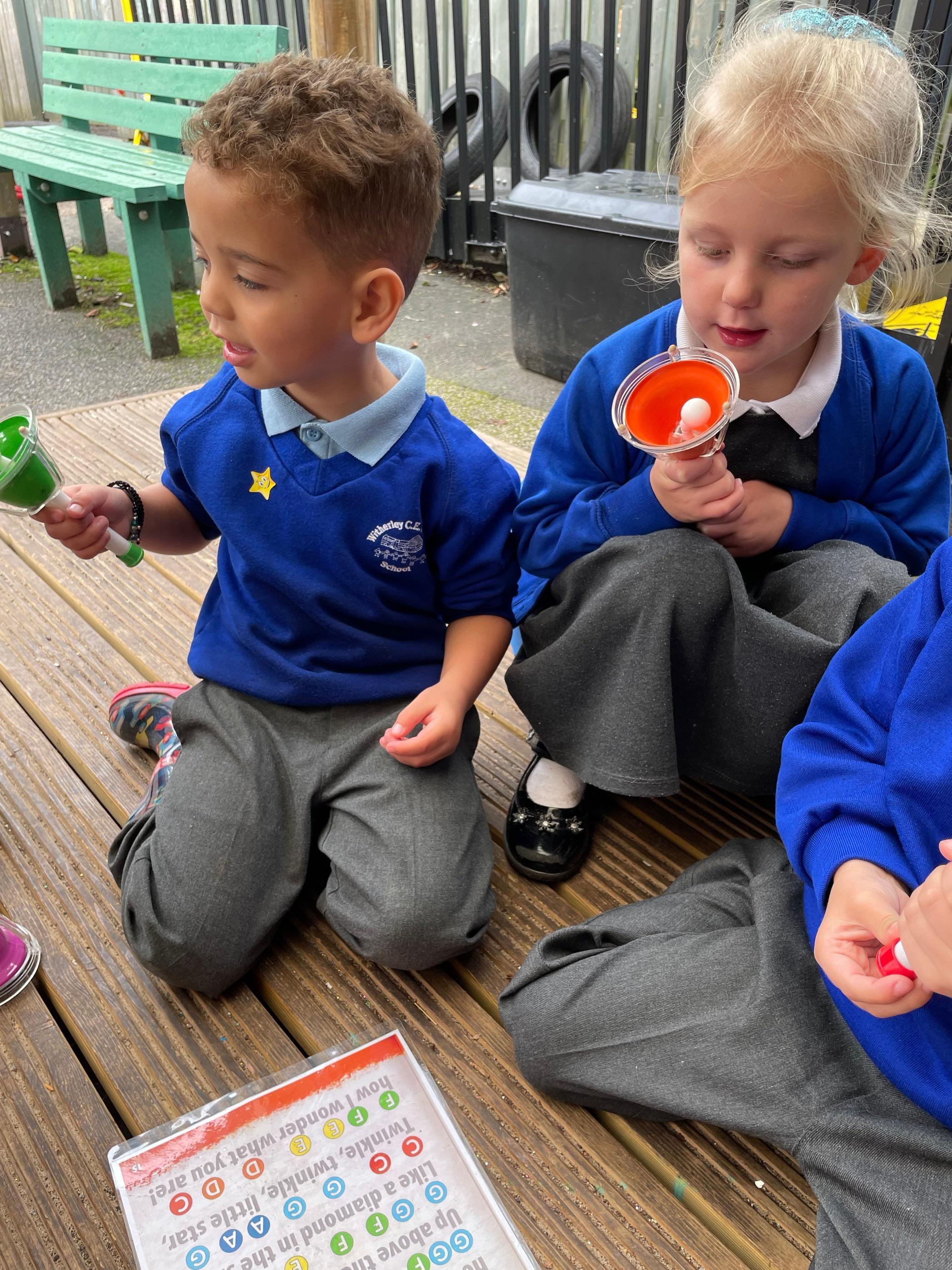 Here we are learning to listen to each other and following a simple music score.
