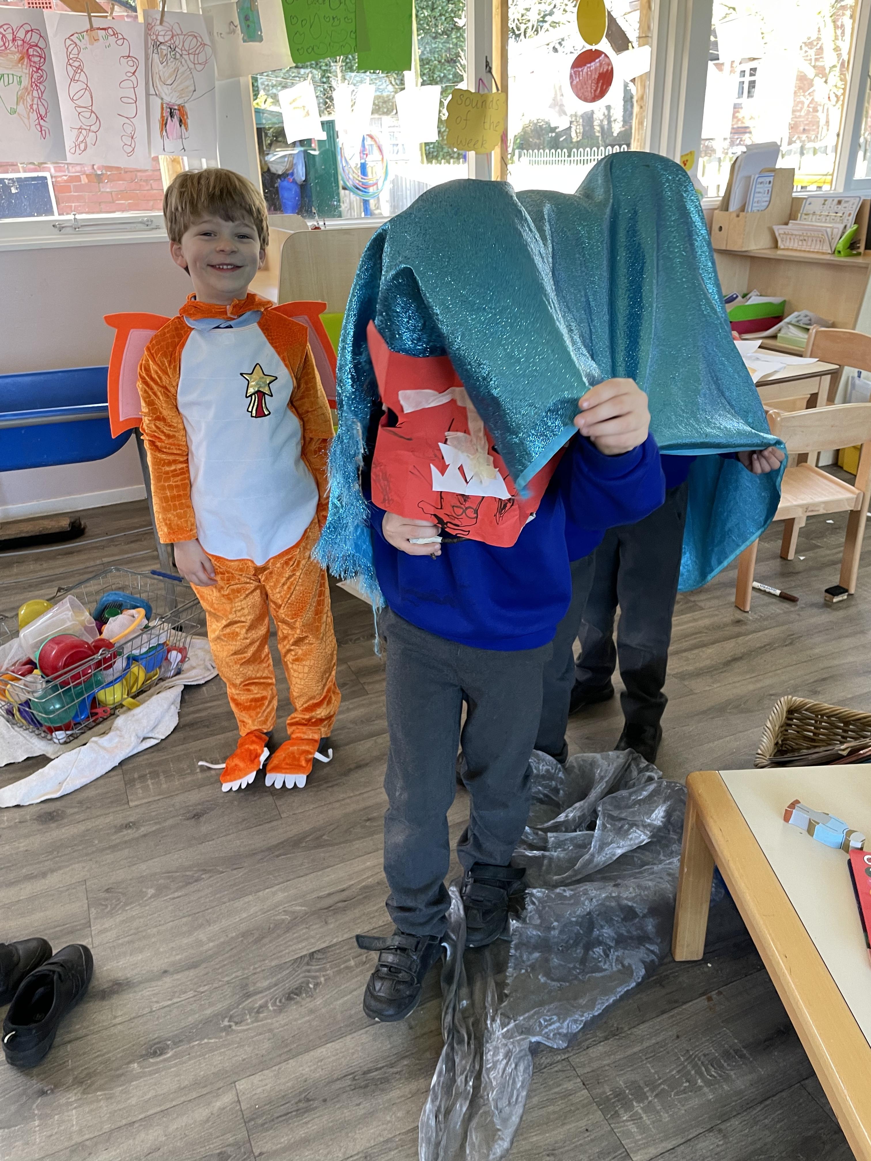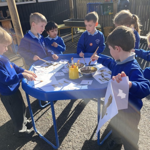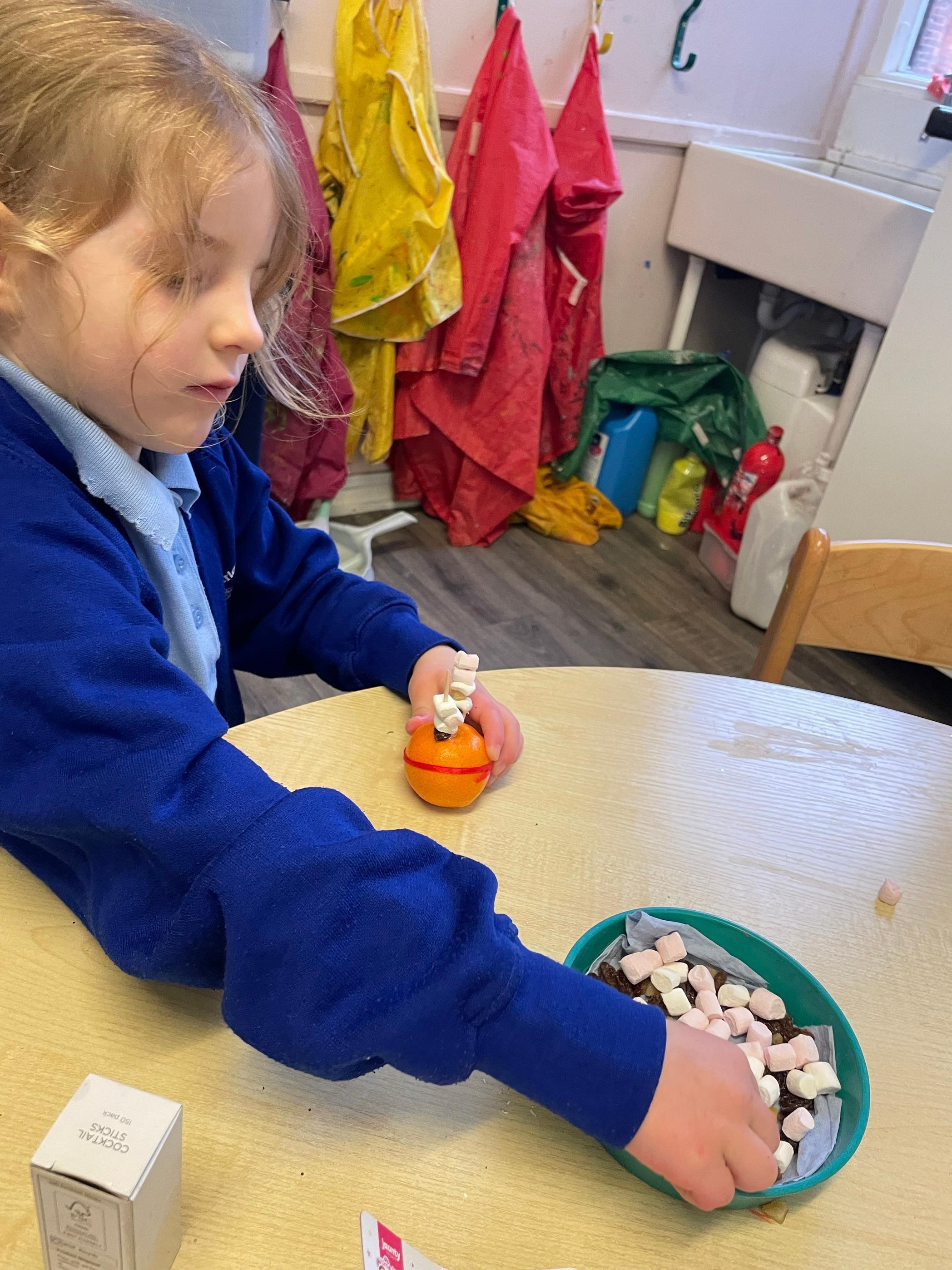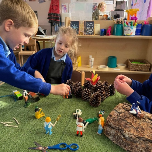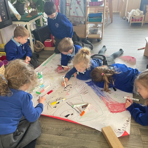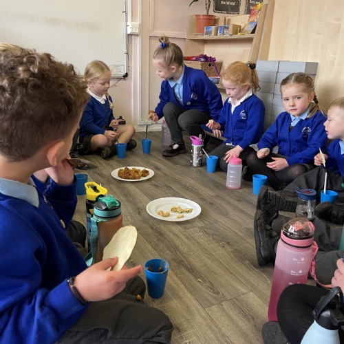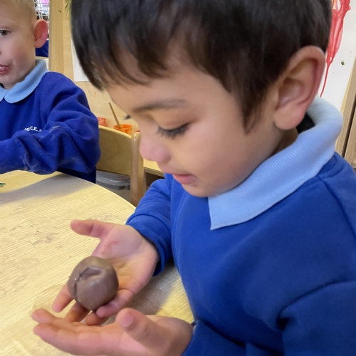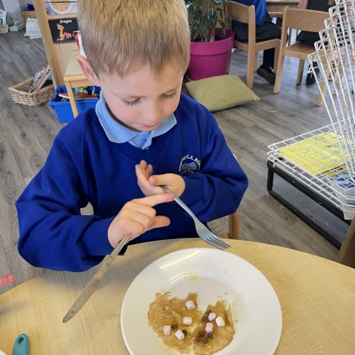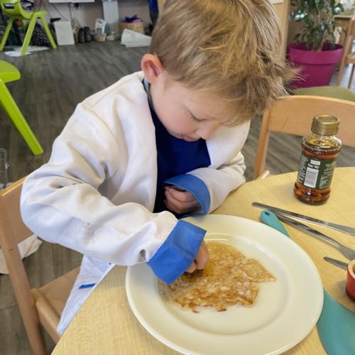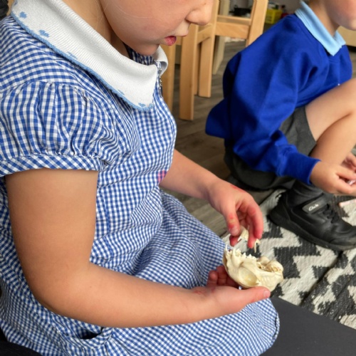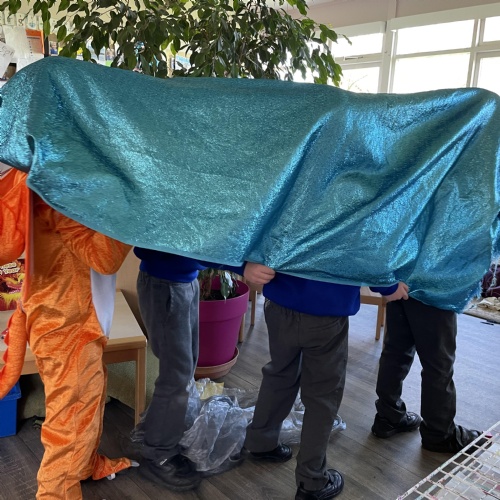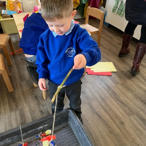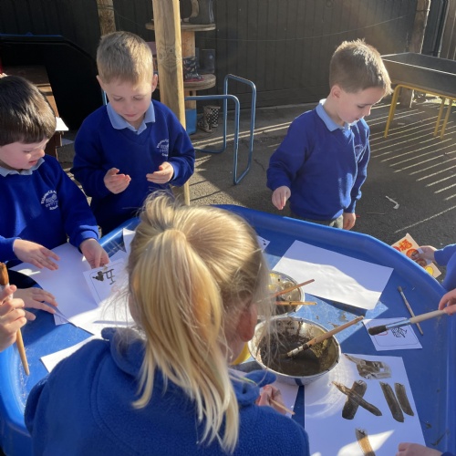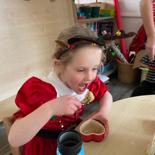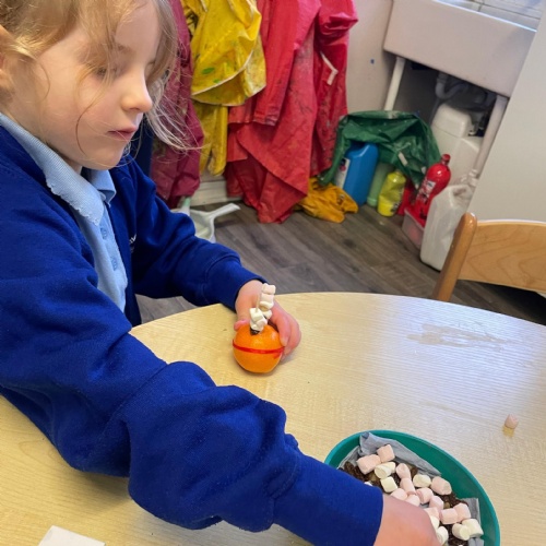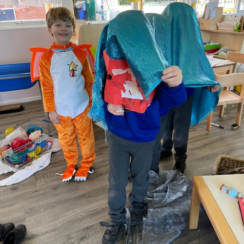 We had a very full November. We have learned that you need to respect fire and how to cook marshmallows safely - yum! Our school bell tent was erected and we have enjoyed warming up in there on chilly Forest School days. We also looked at fish and found they have teeth! We celebrated Bonfire Night by learning about the story of Guy Fawlkes and exploring colour mixing. There's never a dull moment in Explorers!