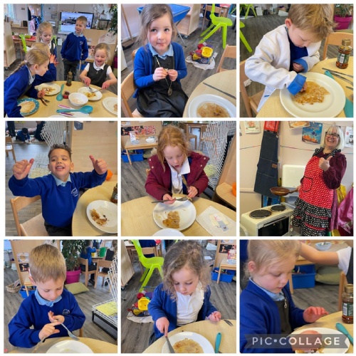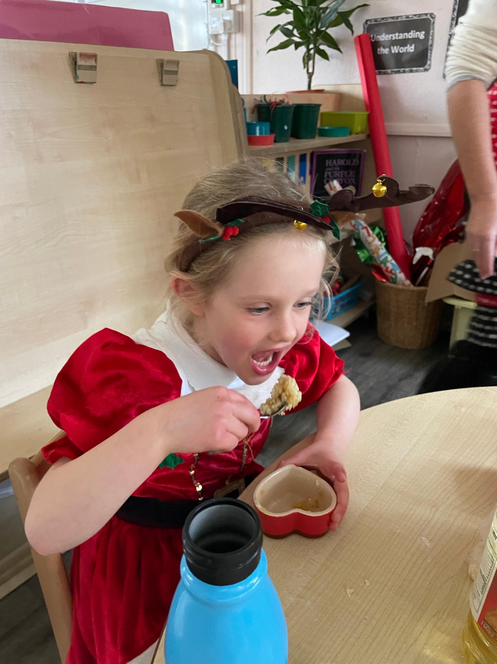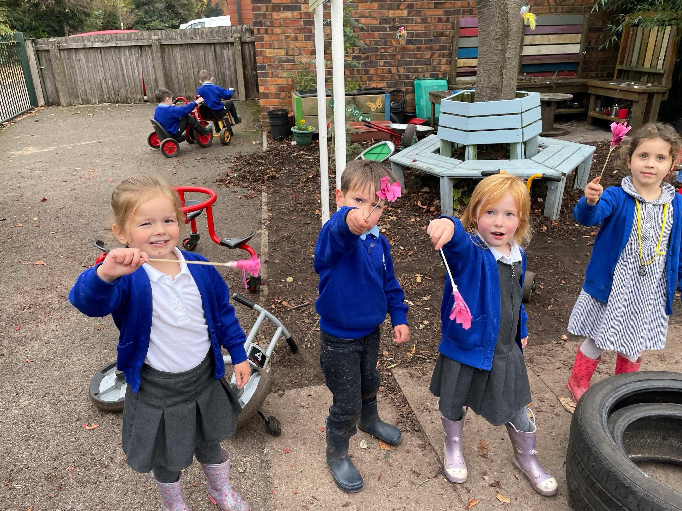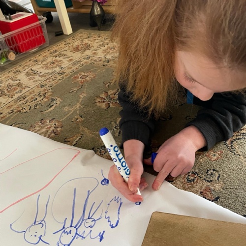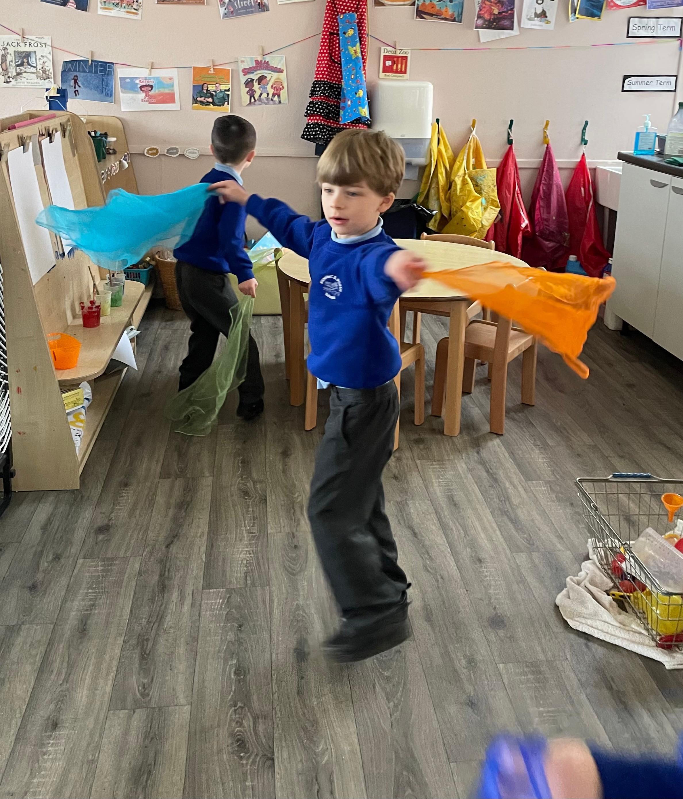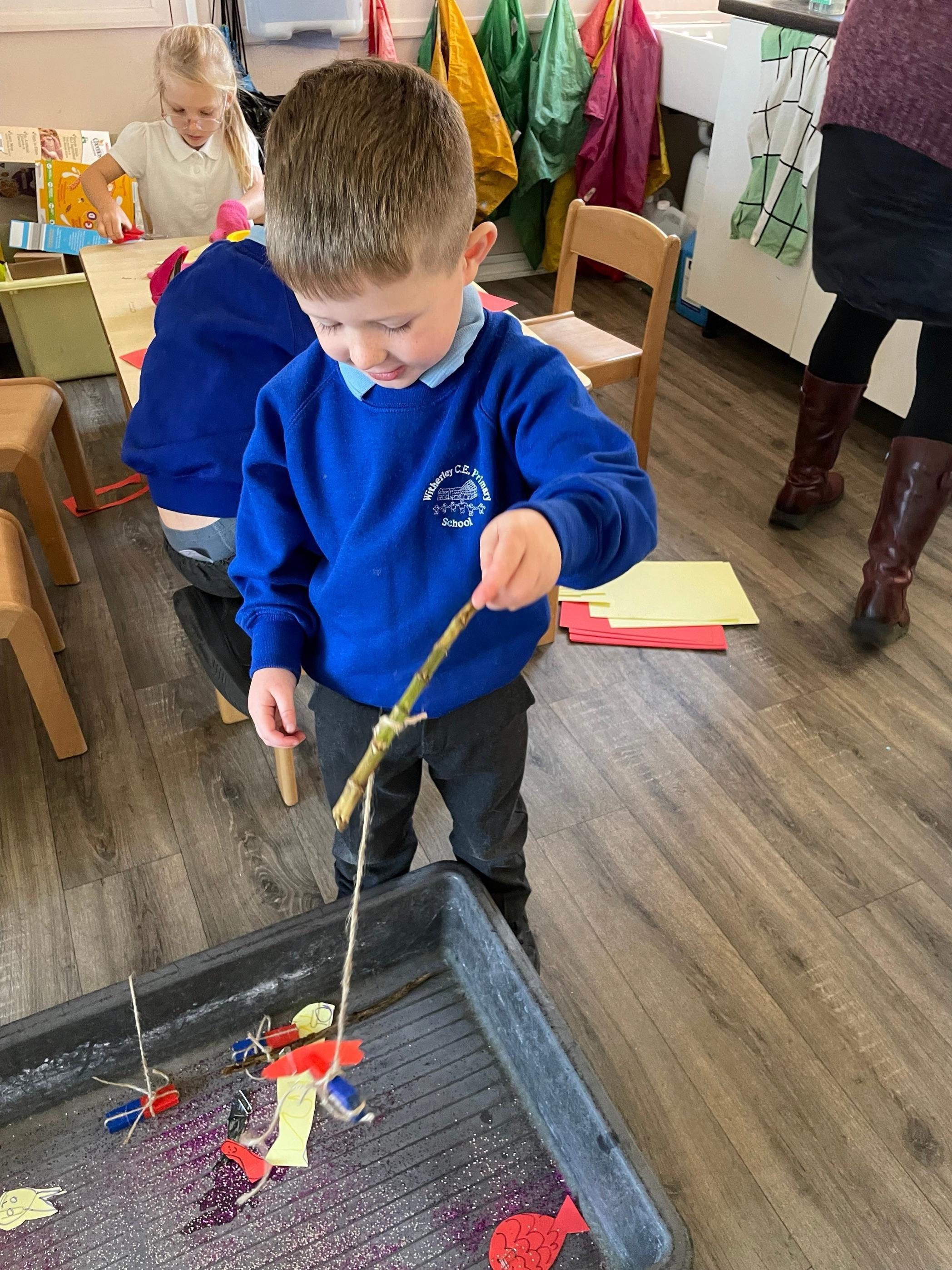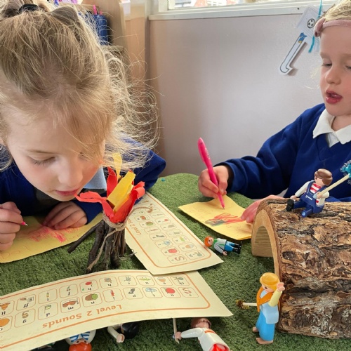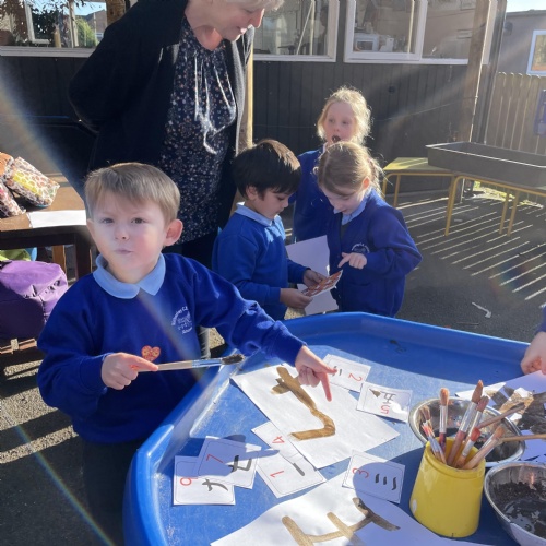 We had a very full November. We have learned that you need to respect fire and how to cook marshmallows safely - yum! Our school bell tent was erected and we have enjoyed warming up in there on chilly Forest School days. We also looked at fish and found they have teeth! We celebrated Bonfire Night by learning about the story of Guy Fawlkes and exploring colour mixing. There's never a dull moment in Explorers!