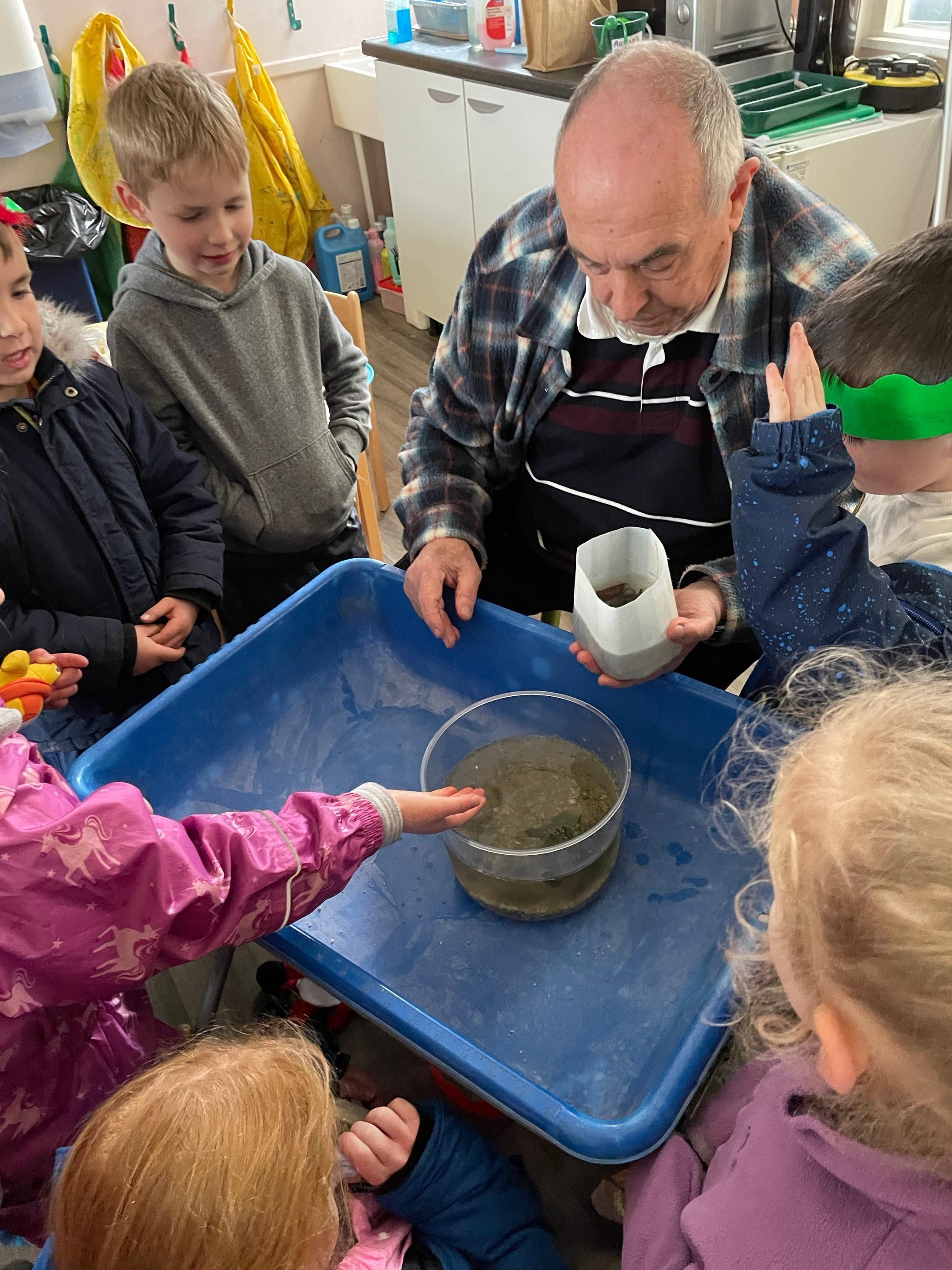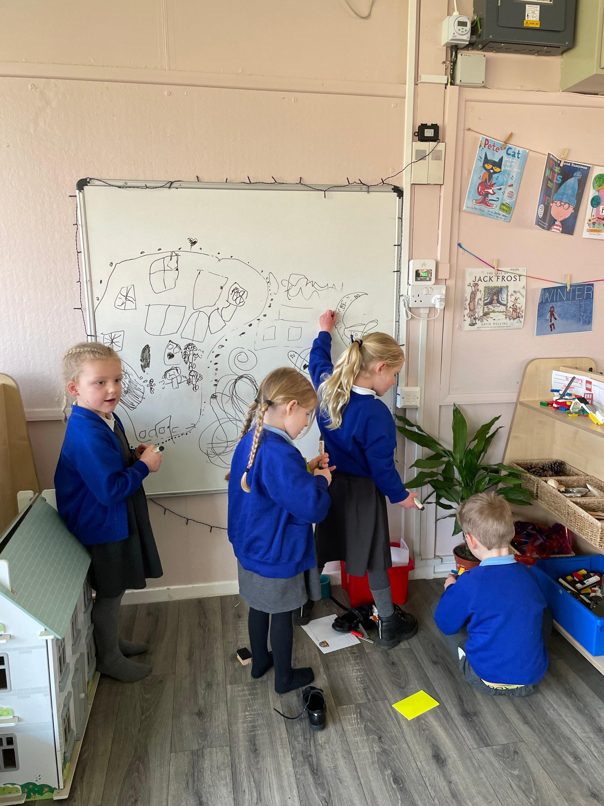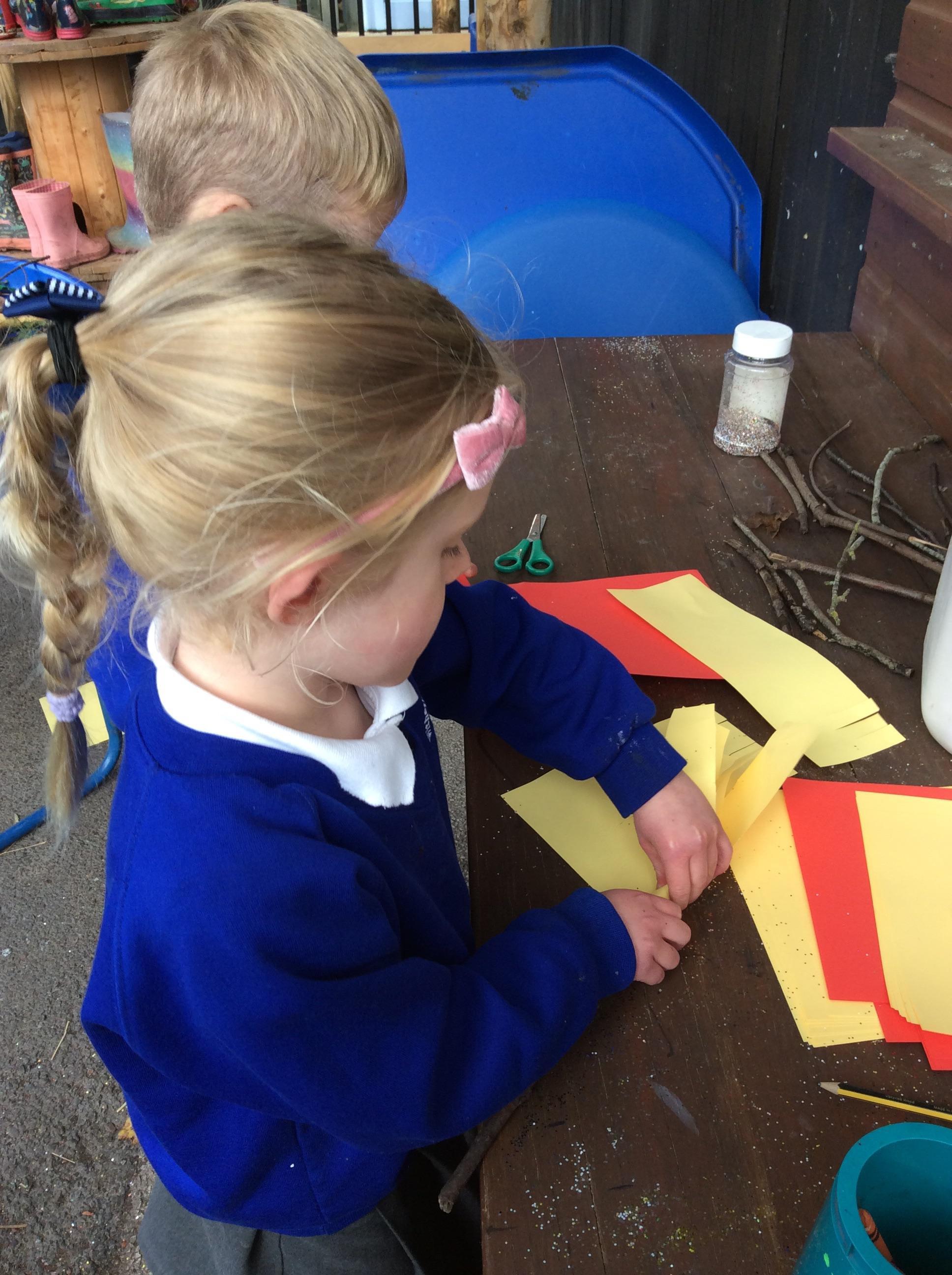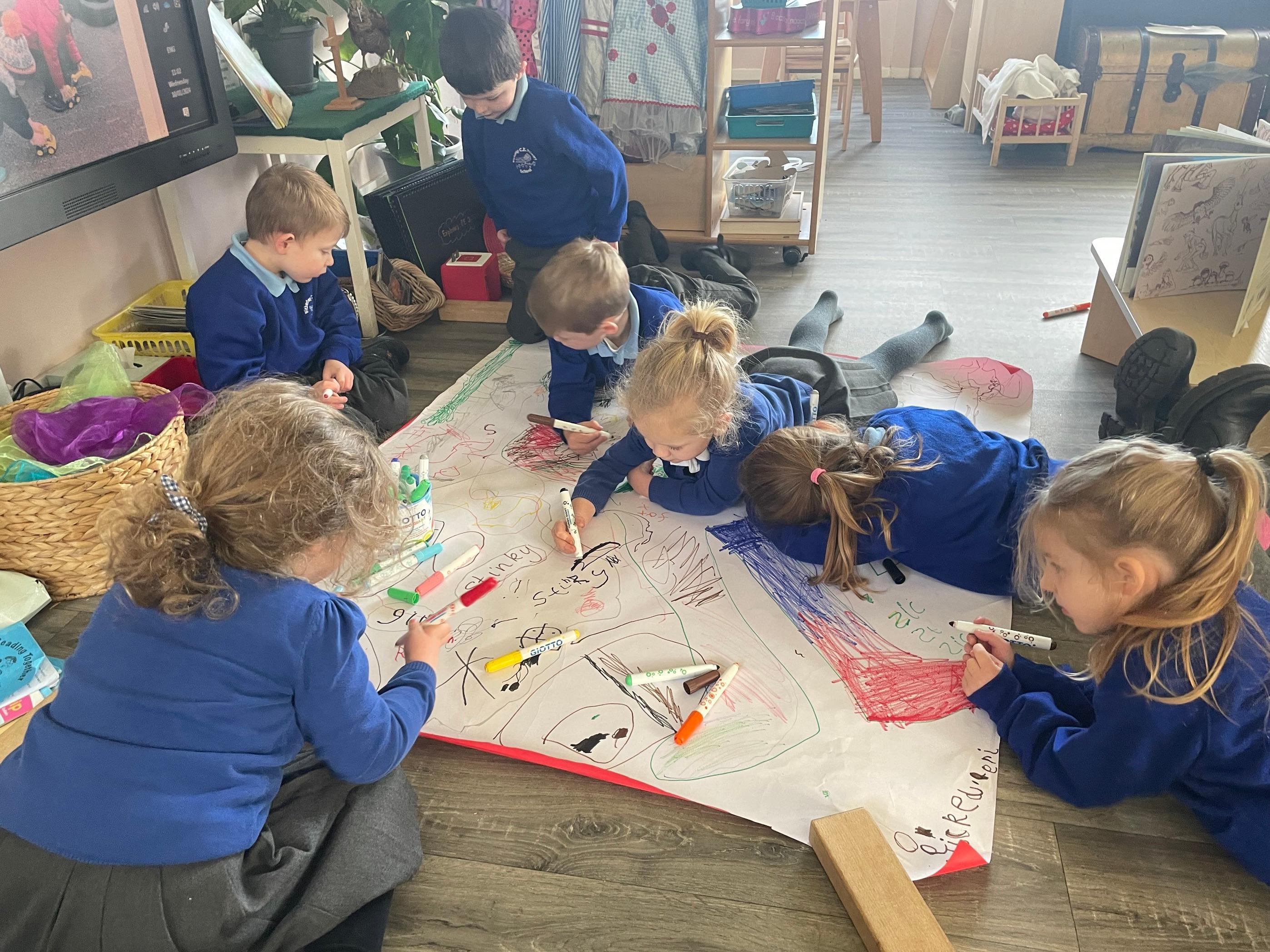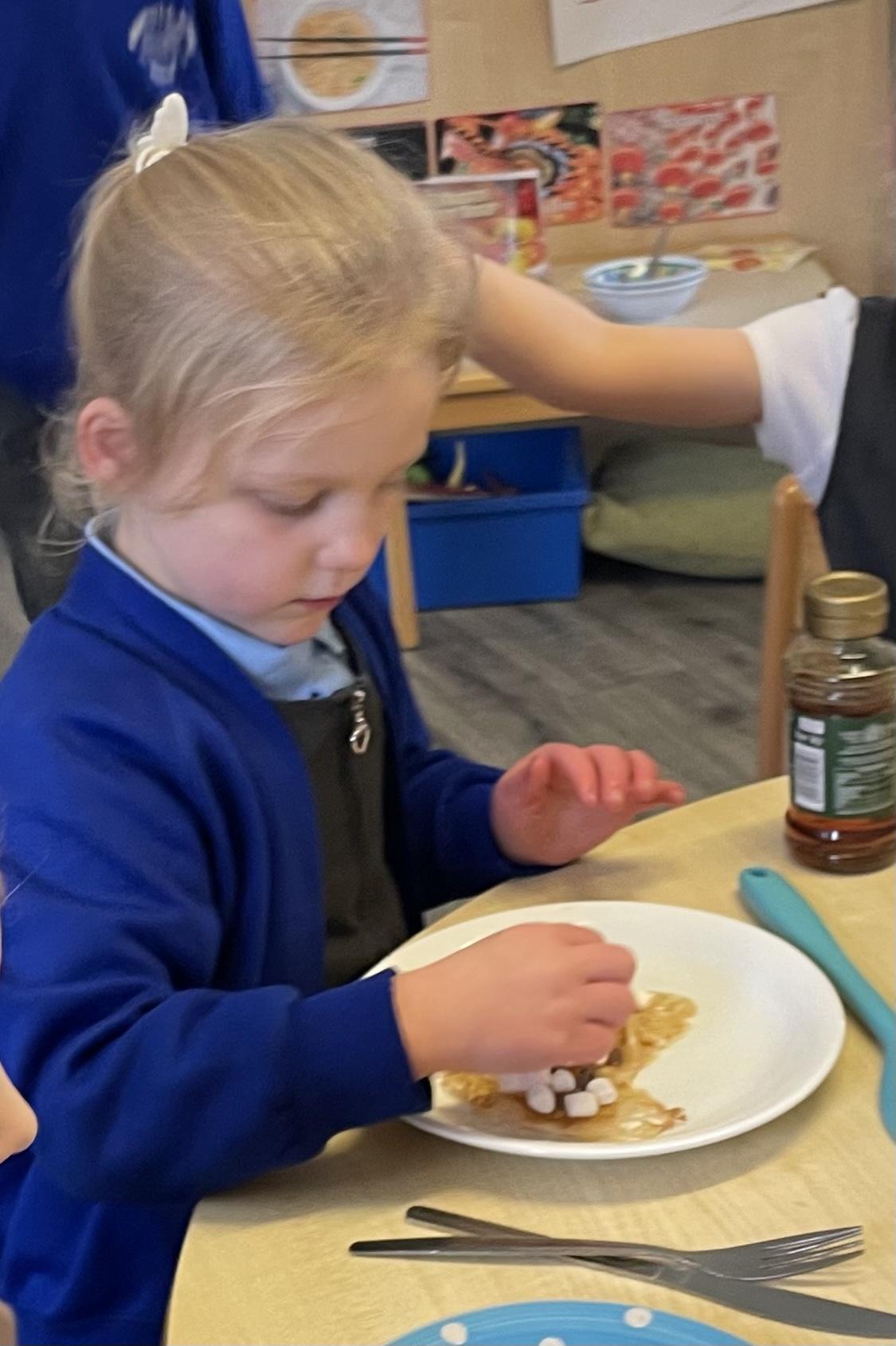 We had a very full November. We have learned that you need to respect fire and how to cook marshmallows safely - yum! Our school bell tent was erected and we have enjoyed warming up in there on chilly Forest School days. We also looked at fish and found they have teeth! We celebrated Bonfire Night by learning about the story of Guy Fawlkes and exploring colour mixing. There's never a dull moment in Explorers!