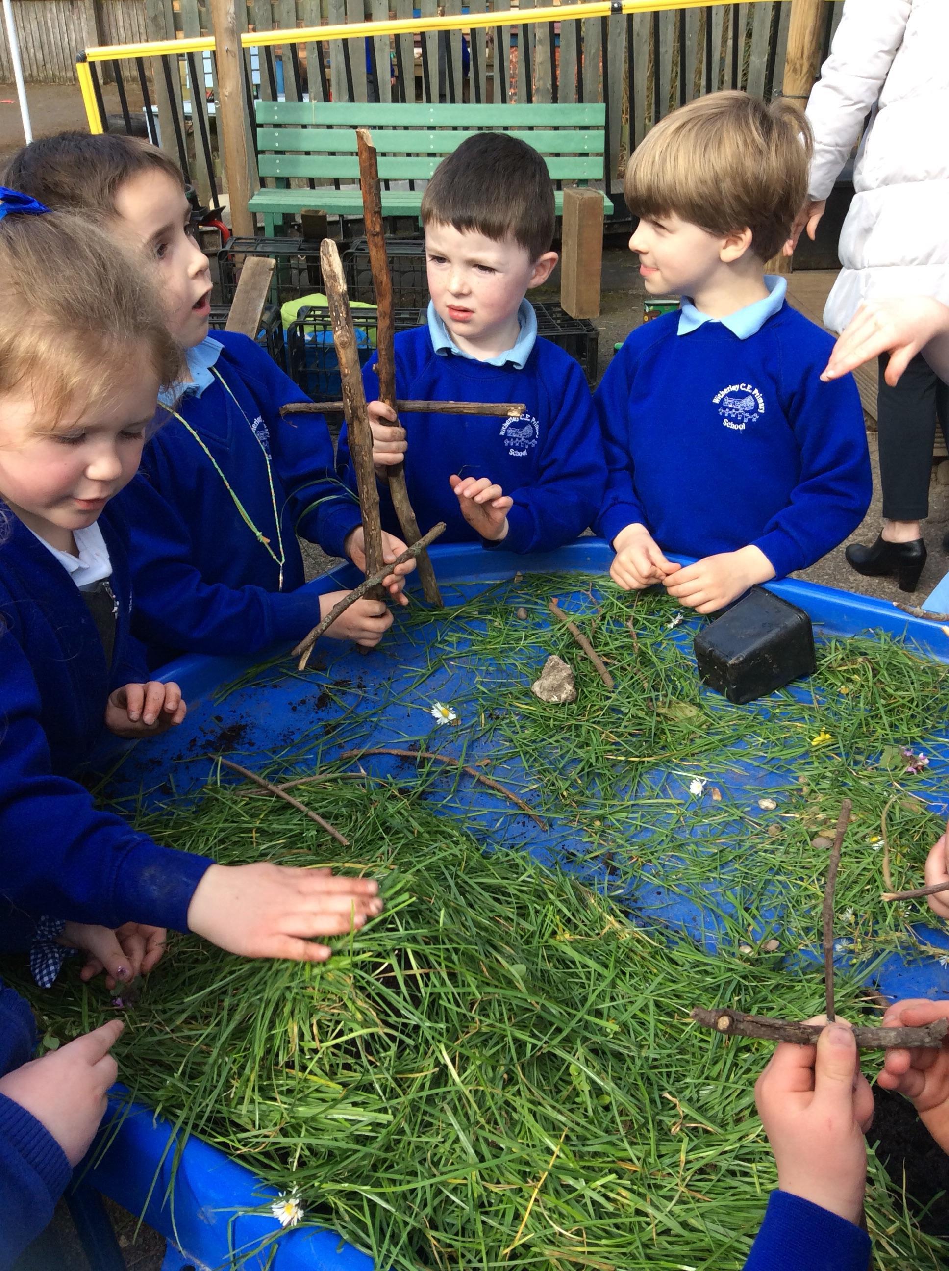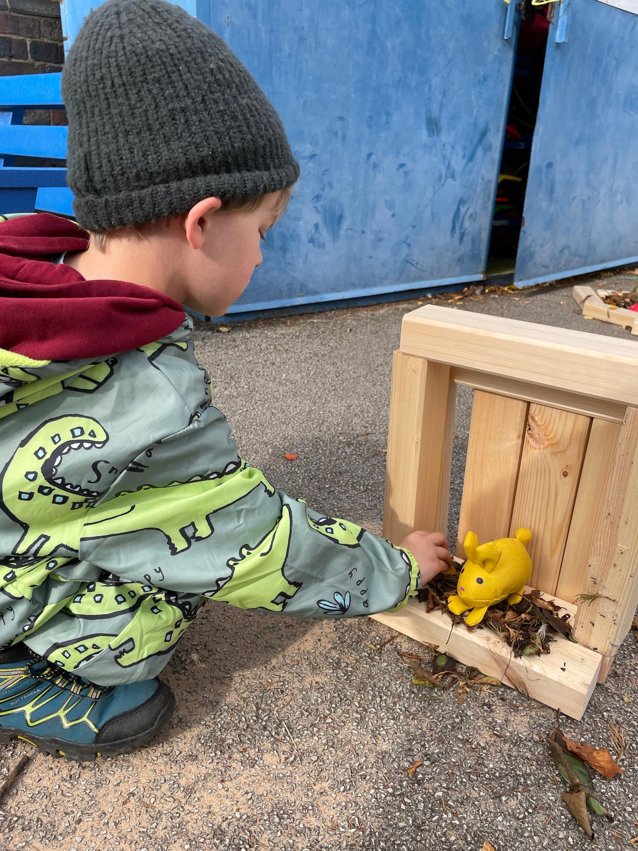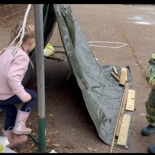 We’ve developed our den making skills by working and communicating our ideas as part of a team then applying what we’ve learned to building tiny dens for The Little People (who live in our Forest School space!) individually.