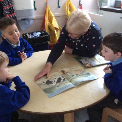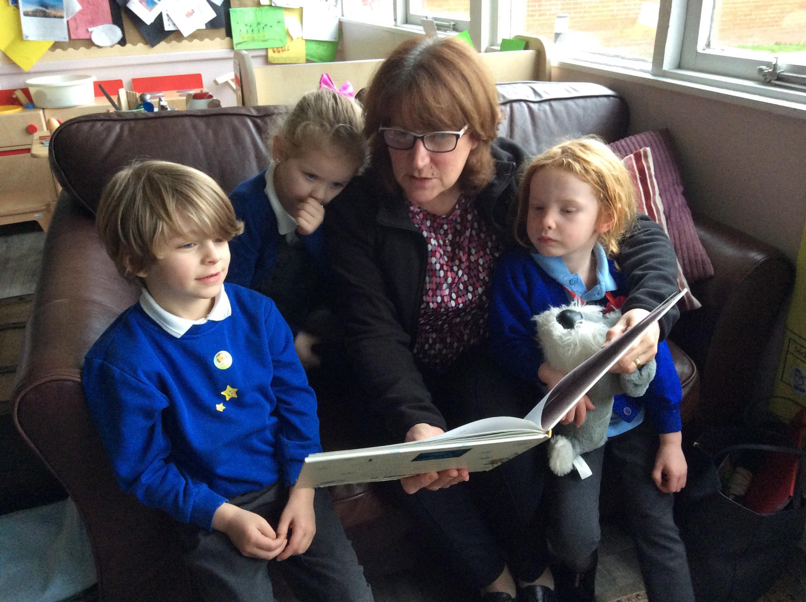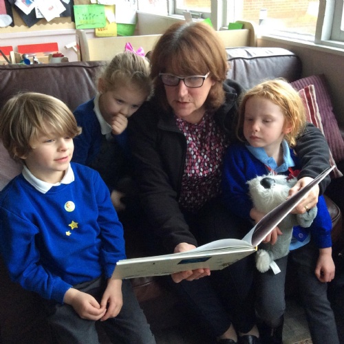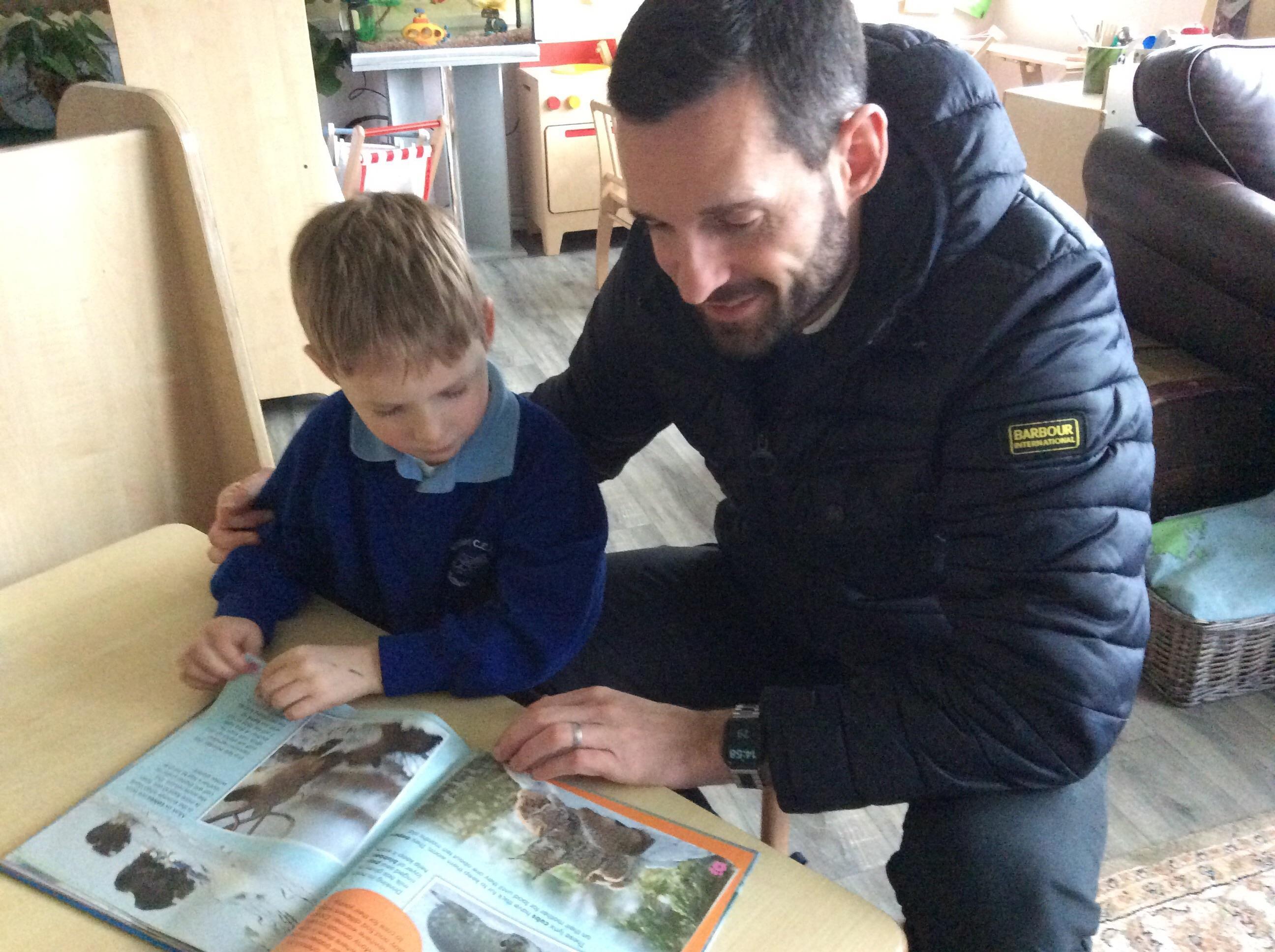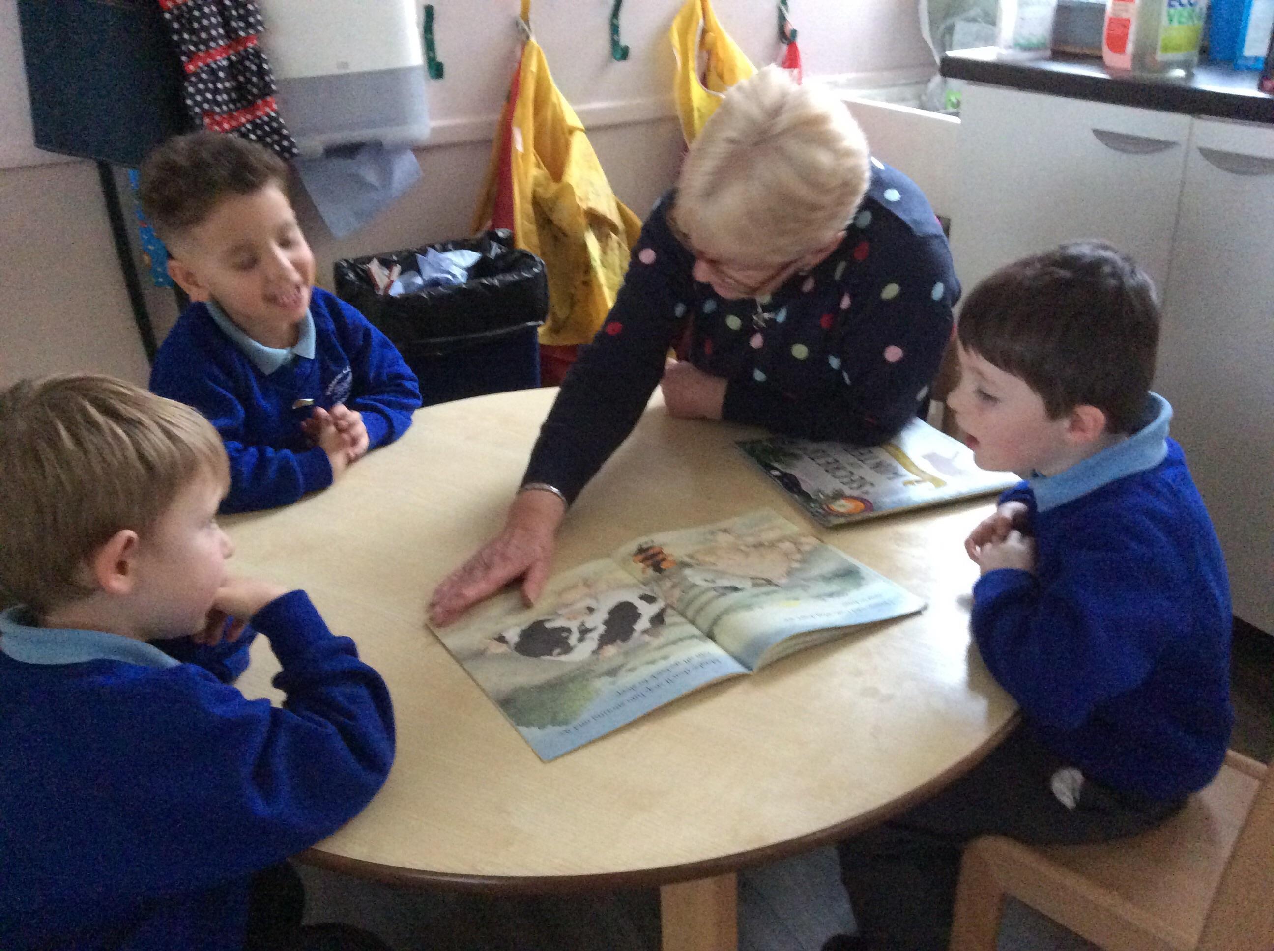 Once a month we invite one of our family to come and share stories and books with us. We share our grown ups with our friends!! We love it, it’s a special time for all of us.