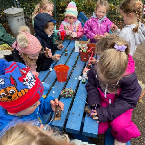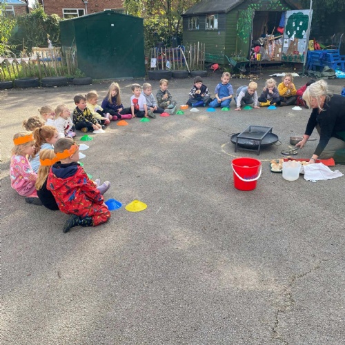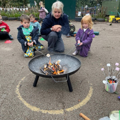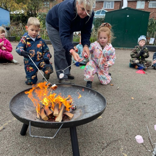 October the arrival of Autumn. We have loved exploring all the wonderful Autumn treasures this season brings. We are enjoying our Forest School sessions and had our first fire - sausages were cooked and munched!