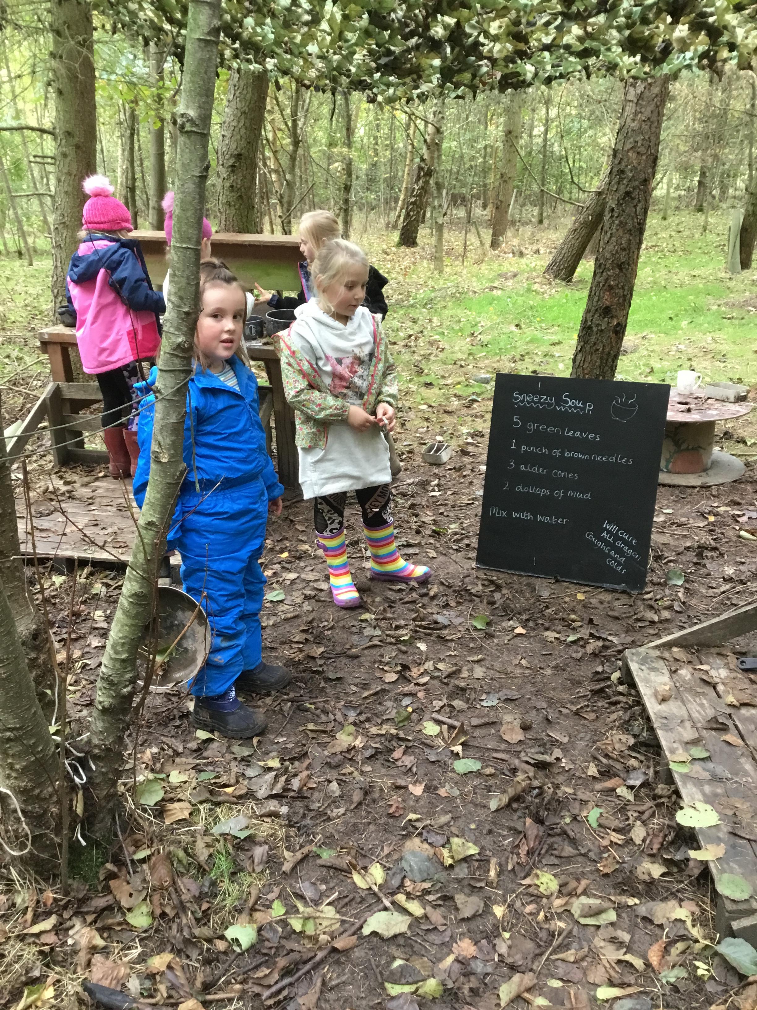 We had fun making dragon medicine in the mud kitchen. Some of us were really brave and climbed over the tunnel.