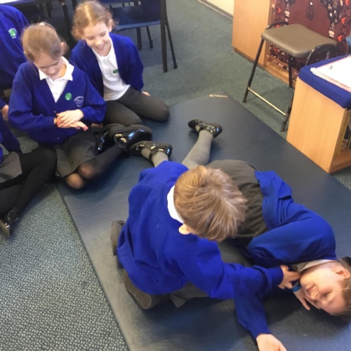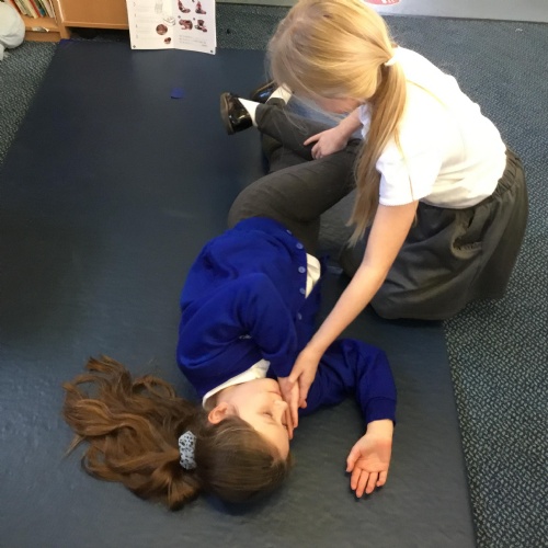 In PSHE, the children have been learning about what to do in an emergency, how to call 999 and basic first aid. All of year 3 and 4 have completed a First Aid Course lead by Mini First Aid.