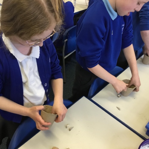 In Science, we have been learning about types of rocks, soil formation and fossils including fossil hunter Mary Anning. It was great fun when we made our own fossils by pressing shells into clay and casting them in plaster.